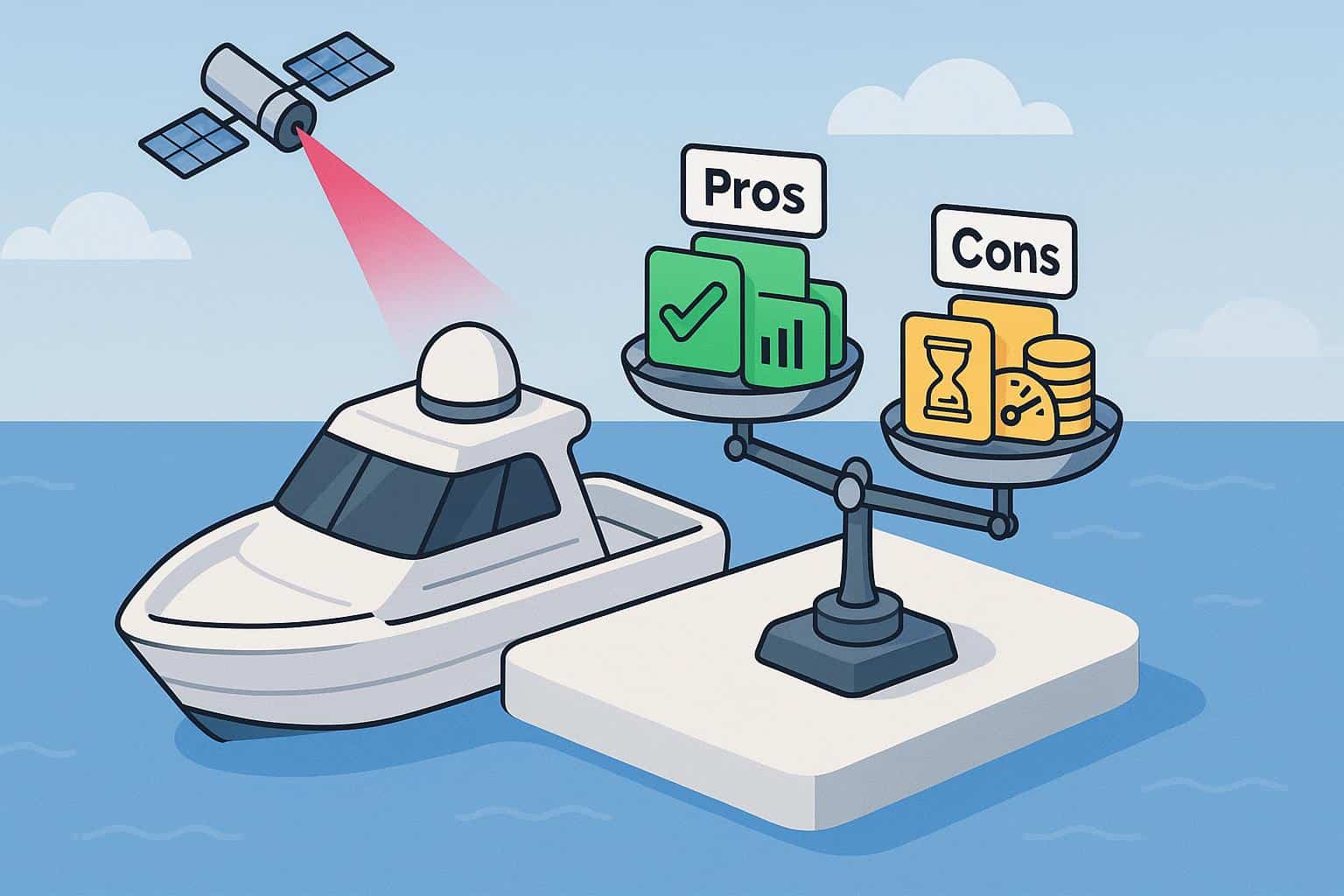 Weighing the pros and cons of satellite internet helps you decide if satellite internet is the best option for your boating needs. While it offers reliable connectivity at sea, its practicality depends on your travel habits and priorities.